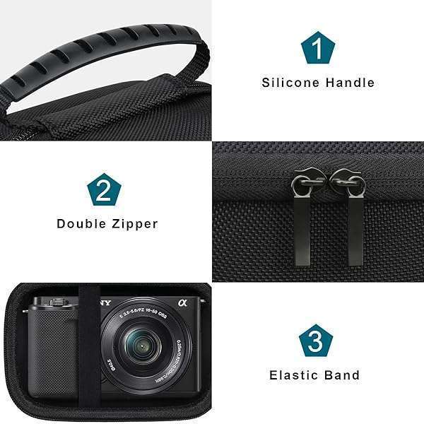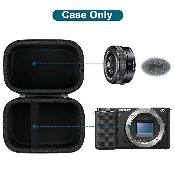 * Canboc Carrying Case for Sony Alpha ZV-E10/ ZV-E10L APS-C Interchangeable Lens Mirrorless Digital Camera, 4K Video Vlogging Camera Bag, Fit 16-50mm Lens, Black: perfect storagecase only! (digital camera and accessories are not included) * Hard travel mirrorless camera case compatible with Sony Alpha ZV-E10/ ZV-E10L APS-C interchangeable lens mirrorless digital camera * 16-50mm lens * Premium MaterialDigital camera case made of scratch resistant fabric and high-quality durable EVA sturdy shell