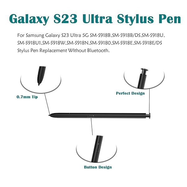 - Galaxy S23 Ultra S Pen Replacement for Samsung Galaxy S23 Ultra Stylus Pen withoutBluetooth,Galaxy S23 Ultra Replacement Pen for Samsung Galaxy S23 Ultra(Black) with reliable performance and quality- CompatibleFor Samsung Galaxy S23 Ultra 5G SM-S918B,SM-S918B/DS,SM-S918U,SM-S918U1,SM-S918W,SM-S918N,SM-S9180,SM-S918E,SM-S918E/DS Stylus Pen Replacement WithoutBluetooth.- High QualityBrand new high quality guaranteed!4096 levels of pressure sensitivity.Precise touch and contro