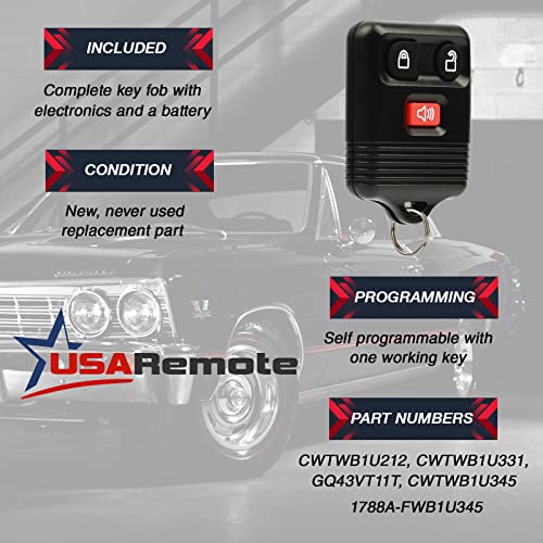 - Car Key Fob Keyless Entry Remote fits Ford, Lincoln, Mercury, Mazda with Ignition Key (CWTWB1U331 GQ43VT11T CWTWB1U345 3-btn) offers reliable performance and quality- fits Ford, Lincoln, Mercury, Mazda- Replacement for P/N: CWTWB1U345, CWTWB1U331, CWTWB1U212, GQ43VT11T