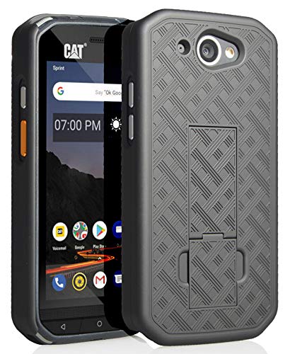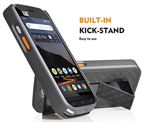 CAT S48c Case with Clip & Kickstand - Black Tread Holster for Caterpillar Phone (Verizon, Sprint, Unlocked)