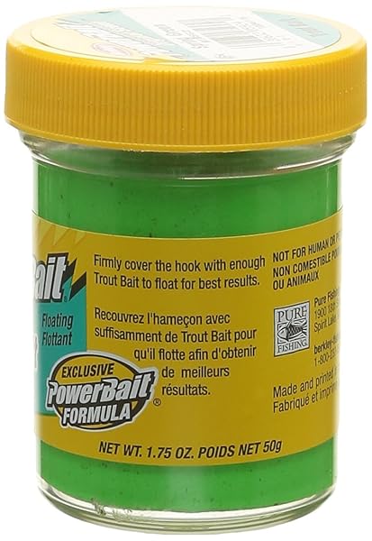 - Berkley PowerBait Trout Bait , Spring Green provides reliable performance and quality- Moldable and easy to use- Floating formula enhances dispersion of scent and flavor- Moldable, easy to use- Floating formula for maximum scent dispersion
