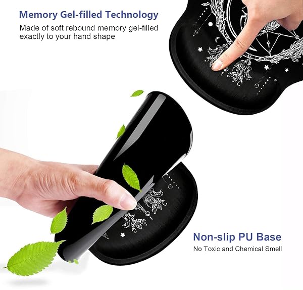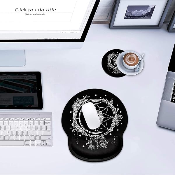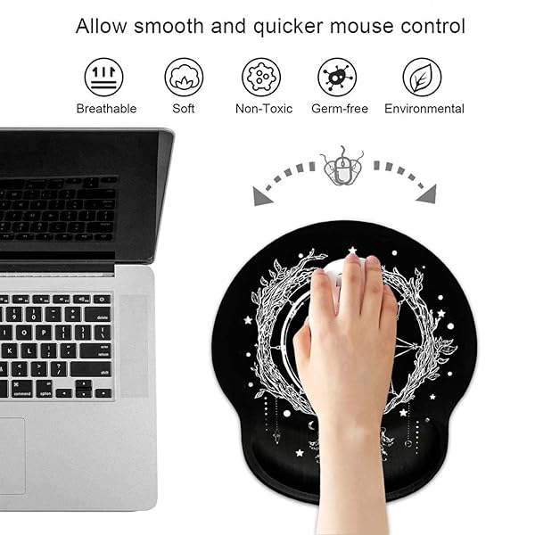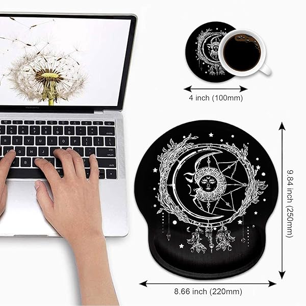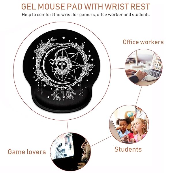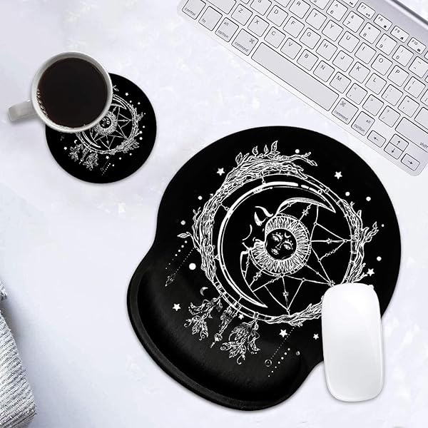 * Ergonomic Mouse Pad Wrist Support and Cute Coffee Coaster, Celestial Theme Sun with Crescent Moon Design Wrist Rest Mousepad, Pain Relief Wrist Mouse Pads for Computer Laptop Home Office: ergonomic wrist support the ergonomic mouse pad is designed to move your wrist from a awkward bent position to an optimal neutral position with a gel-filled cushion * It maintains wrist comfort and reduce carpel tunnel for long time mouse usage: gamers * Students * Office workers * At home