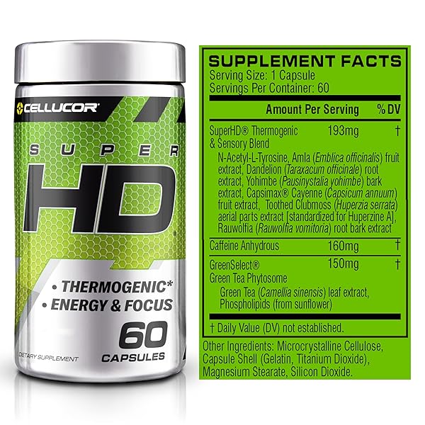 * Cellucor SuperHD Thermogenic Fat Burner Weight Loss Supplement, Appetite Suppressant, & Energy Booster Capsimax, Green Tea Extract, 160mg Caffeine & More 60 Capsules (Packaging May Vary): super hd is the high-definition thermogenic formulated to ramp up your body support results * Fire Up Your Metabolism Powered by the high-definition formula of clinically studied ingredients * Super HD fires up your body support journey with EXPLOSIVE ENERGY Ignite your calorie torching journey with explosive