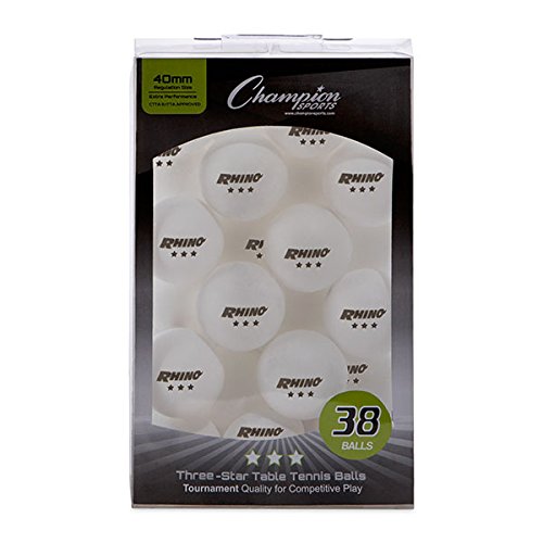 - Champion Sports 3 Star Table Tennis Ball Pack, Tournament Grade Equipment, 38 Balls, White Ping Pong Balls, 40mm Seamless Design, CTTA and ITTA Approved offers reliable performance and quality- PREMIERE PING PONG BALLS: The 3 Star Table Tennis Balls from Champion Sports are made to offer high-quality entertainment and sport for anyone. They come in sets of 38, making it convenient to play multiple games at once or for quick replacement