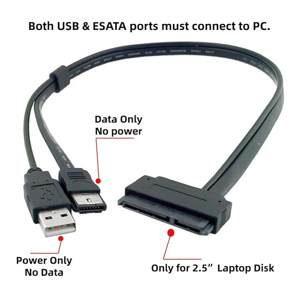 - chenyang eSATA to SATA 22Pin Data Transfer Extension Cable with USB 2.0 Power Support 5V Power for 2.5" Hard Disk Drive 50cm offers reliable performance and quality- Please note that USB 2.0 is only for power supply, not for data transmission through USB 2.0 port- The cable can connect a 2.5-inch SATA hard drive directly to the eSATA interface- The hard drive is powered by the computer's USB interface