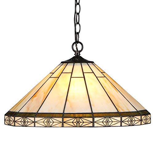 - Chloe Lighting CH31315MI18-DH2 Belle Tiffany-Style Mission 2-Light Ceiling Pendant with Shade, 8.7 x 18.1 x 18.1", Bronze offers reliable performance and quality- (2) 60 Watt max E26 Type A Bulb (not included)- Hardwired, Wall outlet switch- 64pcs glass cut- Tiffany-style Mission is handcrafted with pure stained glass