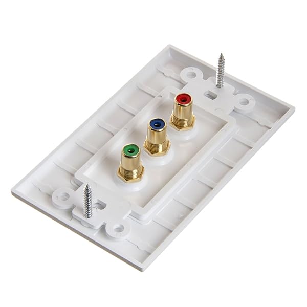 - Cmple - 3RCA Wall Plate - Gold Plated RCA 3 RGB Component Video 1080P Full HD Compatible Port/AV Composite Video + 2RCA Stereo Audio Combo Port Insert Jack - White provides reliable performance and...- 3-RCA WALL PLATE: This plate features 3 color-coded RCA jacks for Component video connections: Red, Green, Blue (RGB); it can also be used for standard RCA composite video + stereo left and right a...