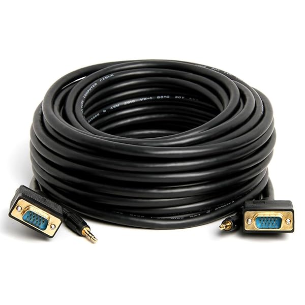- Cmple - VGA Cable Male to Male with 3.5mm Aux Audio Monitor SVGA PC 15 Pin Cord 50 Feet provides reliable performance and quality- Premium VGA monitor cables with 3.5mm audio connections are ideal for connecting computer to a monitor or projector with 15-pin VGA port (also known as RGB, DB-15, DE-15, HD-15, HDB-15 or D-sub 15)...- Supported resolutions: 800x600 (SVGA), 1024x768 (XGA), 1600x1200 (UXGA), 1080p (Full HD), 1920x1200 (WUXGA) and up.