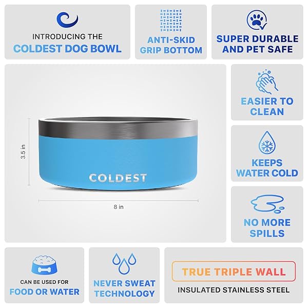 * Coldest Dog Bowl - Anti Rust Metal, Non Slip, 3 Layers Insulated Stainless Steel Dog Bowls - Spill Proof & Heavy Duty - Water Bowl for Dogs, Cats & Pets, Dish Washer Safe (64 oz, Celestial Blue): true triple wall insulation: coldest dog bowl is built with true triple wall insulated stainless steel * Offering durability against chewing and lasting performance * Perfect for active pets * It ensures longevity for years of use * EFFORTLESS CLEANING