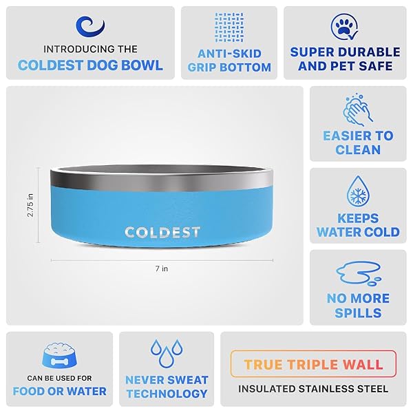 * Coldest Dog Bowl - Anti Rust Metal, Non Slip, 3 Layers Insulated Stainless Steel Dog Bowls - Spill Proof & Heavy Duty - Water Bowl for Dogs, Cats & Pets, Dish Washer Safe (42 oz, Celestial Blue): : tired of spending money on dog bowls that can't stand up to your pup's energy? the coldest dog bowl is made with super strong stainless steel that won't break * Even if your furry friend loves to chew * With a True Triple Wall Insulated Stainless Steel construction * It's built to last * Ensuring
