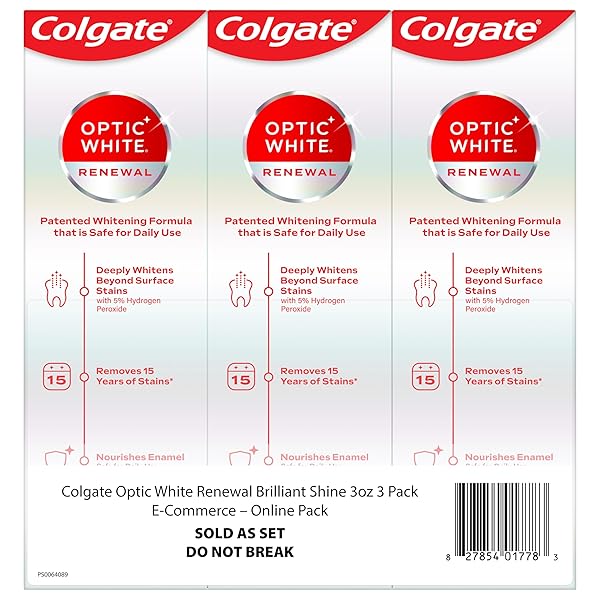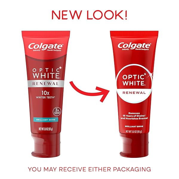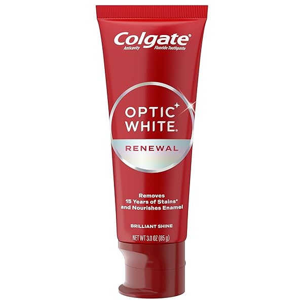 * Colgate Optic White Renewal Teeth Whitening Toothpaste, Whitening Fluoride Toothpaste, Effectively Removes Tea, Coffee, and Wine Stains, Made with Hydrogen Peroxide, Brilliant Shine, 3 Pack, 3.0 oz: welcome a brilliantly white smile with the colgate optic white renewal teeth whitening toothpaste * This 3 pack of whitening fluoride toothpaste removes 15 years of stains * And effectively removes tea * Coffee * And wine stains