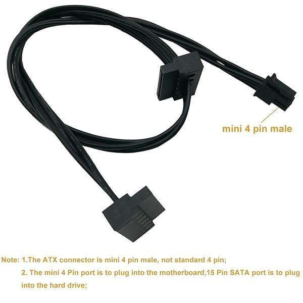 - COMeap (2-Pack) SATA Power Cable for Lenovo Motherboard, ATX Mini 4 Pin to 2X Right-Angle SATA Hard Drive HDD Adapter 17.7-inch(45cm) provides reliable performance and quality- SATA Power Cable for Lenovo MotherboardMini 4 Pin port plugs into Lenovo motherboard (NOTE: It is mini 4 pin port, not standard 4 pin port. Please refer to the image 2nd for mini 4 pin port's dimen...