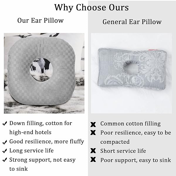 * Wuronsa Ear Piercing Pillow for Side Sleepers with an Ear Hole for CNH and Ear Pain Ear Inflammation Pressure Sores, Cotton O-Shaped Side Sleeping Pillow, Ear Guard Pillow: perfect size: the piercing pillow measures 9" the hole in the middle is a 3.5" circle * The hole in the middle of the pillow fits your ear perfectly * Giving your painful ear a place to rest without the pain of pressure and rubbing * And this height is also suitable * You can use it alone or put it on other pillows