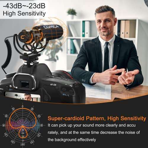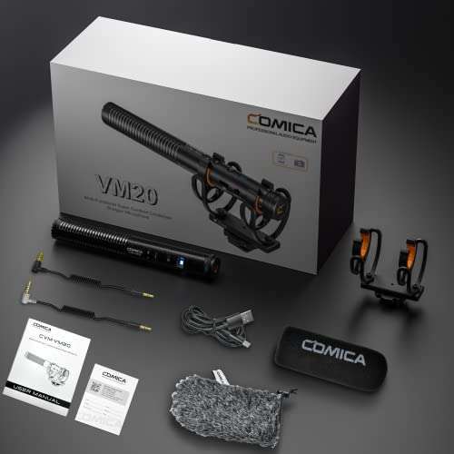 - COMICA VM20 Shotgun Microphone, Professional Super Cardioid Video Mic with Shock Mount, Camera Microphone Kit for Smartphone/DSLR Camera/Camcorder, Perfect for Interview, Video Shooting, Vlog provi...- Super-cardioid Condenser Shotgun MicAdopting the super-cardioid directional pattern, Comica VM20 shotgun microphone effectively eliminates background noise, accurately and clearly records the targe...