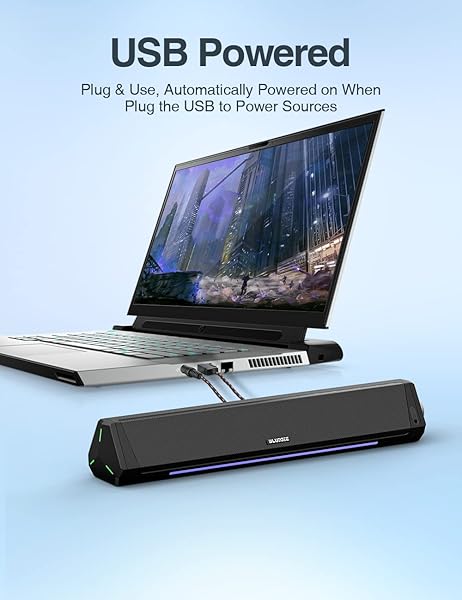 Computer Speakers, Bluetooth Soundbar, HiFi Stereo, 3.5mm Aux-in Connection, USB Powered Speakers for Desktop Monitor, PC, Laptop, Tablets