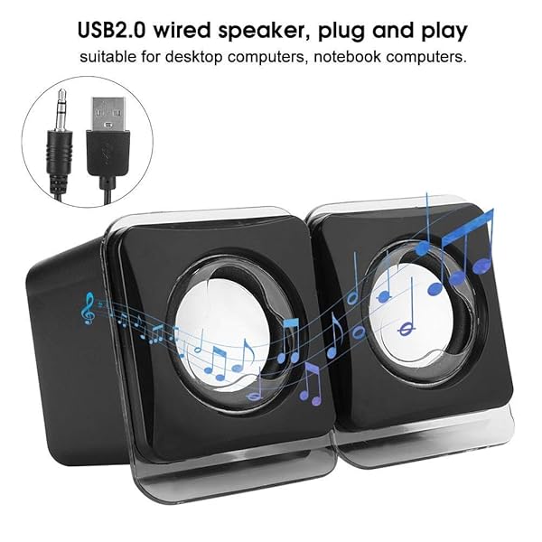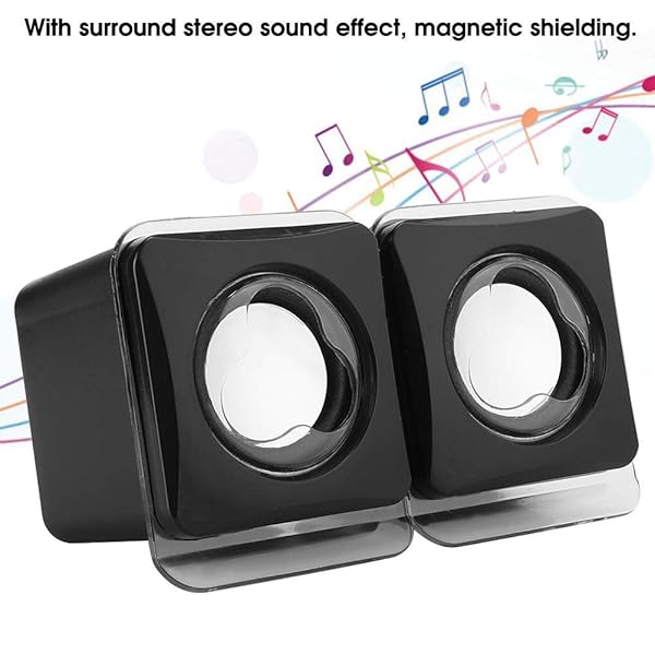 * Computer Speakers for Desktop PC Laptop, USB 2.0 Mini Wired Combination Speaker Stereo Clear Speaker System with Volume Control: function: * Mini desktop speaker with surround stereo sound effect * Magnetic shielding and clear sound quality * Supports volume control and is easy to connect to the audio output of your computer or other music device * Built in amplifier with a frequency range of to 20 kHz