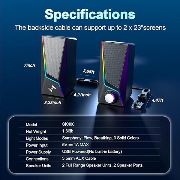 * Computer Speakers, PC Speakers with 6 Lighting Modes, USB Powered Computer Speakers for Desktop Monitor with 2 Bass-Boost Ports, 2 Speaker Units, and 3.5mm Aux-in Cable for PC, Laptop, Tablet, Phone: hi-fi stereo sound quality: enjoy crisp * Distortion-free Hi-Fi sound with 2 full-range dual-magnet speaker units of Nylavee computer speakers * Creating remarkable * Precision quality sound * Unique Speaker Ports for Deep Bass: Designed with 2 unique speaker ports