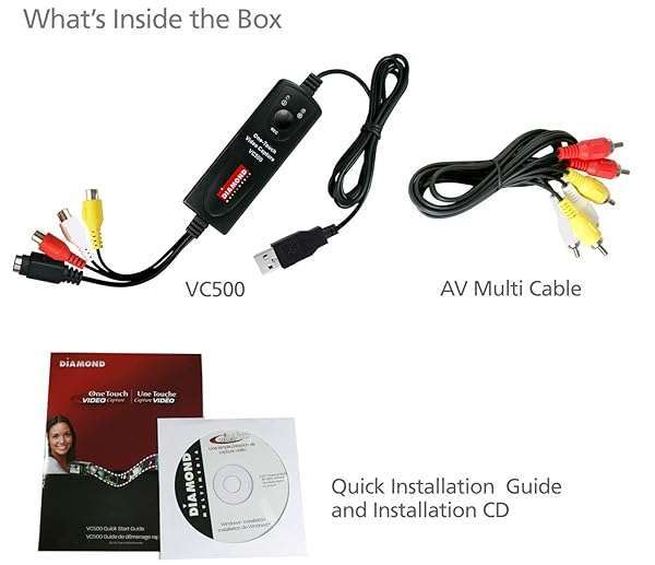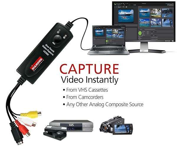 * Diamond Multimedia VC500 One Touch VHS to Digital File, DVD Converter with Easy to use Software, Convert, Edit and Save For Win7,8,10,11: from the manufacturer * Capture videos with the touch of a button with the One Touch video Capture VC500 * The VC500 can capture video and audio from almost any video device * Such as VCR * Camcorder