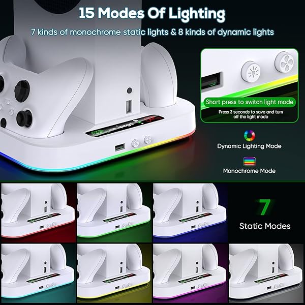 - Cooling Stand for Xbox Series S Console with 15 Light Modes, MENEEA Dual Fast Charger Station with 2x1400mAH Batteries,Cooler System Accessories with 3-Speed Adjustable Fan, 2.0 USB Port with reliable performance and quality- One-piece Cooling Stand for XSS with RGB LightThis new all-in-one RGB stand is designed specifically for the Xbox Series S accessories. It has built-in light strips of different colors and has 15 lighting effects. There are 8 flicker modes (spectral modes/mul