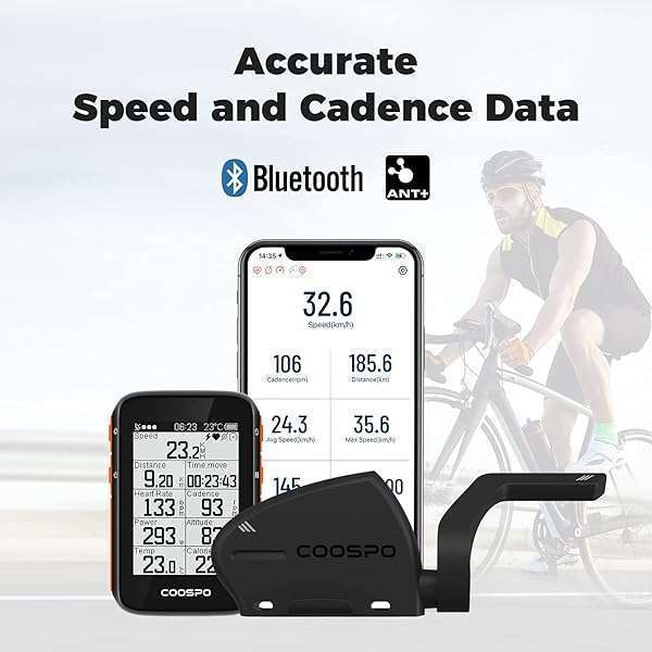 - COOSPO Cadence and Speed Sensor, 2 in 1 Bluetooth ANT+ RPM Cycling Cadence Sensor, Wireless Bike Speed Sensor for Bicycle, Compatible Cycling Computer/Rouvy/Peloton/Wahoo APP provides reliable perf...- Tracking Cadence and Speed Sensor: Accurately monitor real-time both cycling speed and cadence, also provide distance data for compatible Android/iOS APP/GPS bike computers.