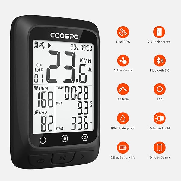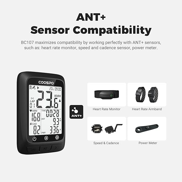 - COOSPO GPS Cycling Computer BC107 & Bike Cadence/Speed Sensor BK467, Wireless Bike GPS Speedometer with 2.4 Inch Auto-Backlight Display, Bluetooth/ANT+ Bicycle Computer GPS Sync with Strava with reliable performance and quality- Bundling Package - You will get 1pcs BC107 GPS bike computer and 1pcs BK467 bike cadence or speed sensor. Out Front Bike Computer Mount is NOT including, it is request for additional purchases.- COOSPO BK467 Bike Cadence / Speed Sensor - With ANT+ &