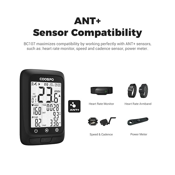 * COOSPO Bike Computer GPS Wireless, ANT+ Cycling Computer GPS with Bluetooth, Multifunctional ANT+ Bicycle Computer GPS with 2.4 LCD Screen, Bike Speedometer with Auto Backlight IP67: accurate gps positioning: coospo's new gps bike computer has 2 modes of global positioning * Which can provide accurate GPS data all over the world * Attention: First-time positioning will take 3-5 minutes * Please make sure you are outdoors * Bike Computer ANT+Coospo cycling GPS computer can support heart rate