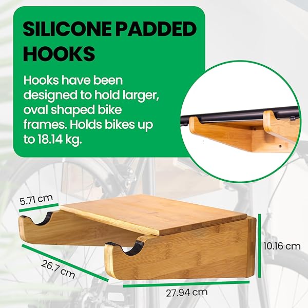 * Bike Wall Mount - COR Indoor Bicycle Rack | Bamboo Bike Rack Storage with Removeable Shelf: store your bike in style: the bamboo bike mount is the perfect way to store your bike indoors * Made from sustainable bamboo * Our bike rack allows you to save space and look classy * Doubles as a Shelf: Store your helmet * Keys