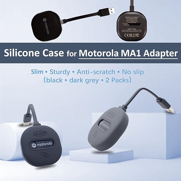 - Counlisha Silicone Case for Motorola MA1 Wireless Android Car Adapter, Skidproof Cover Protect, Lightweight Holder with Adhesive Pad for Car & Truck (2 Packs) Black: reliable performance and quality- 1.Compatibilitysilicone case compatible for Motorola- 2.Protection Function silicone holder protects MA1- 3.Unique DesignThe slim case with right size needn't- 4.Durable SiliconeThe suitable hardness and thickness