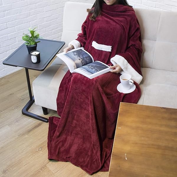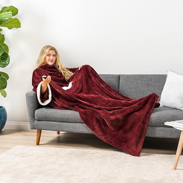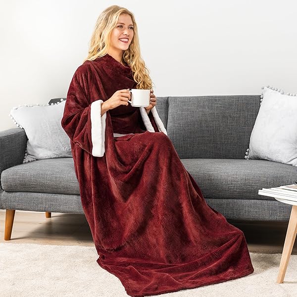 - PAVILIA Fleece Blanket with Sleeves for Women Men Adults, Wearable Blanket Warm Soft Plush, Snuggle Pocket Sleeved TV Throw Wrap, Cozy White Elephant Gifts Ideas Mom Wife, Burgundy Red offers reliable performance and quality