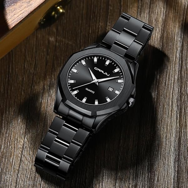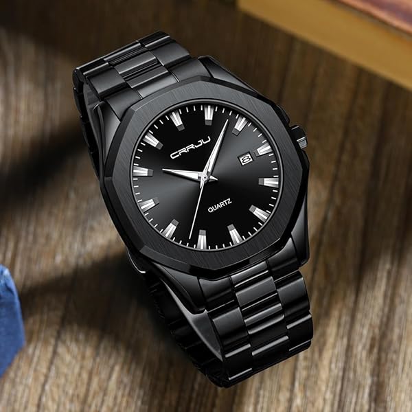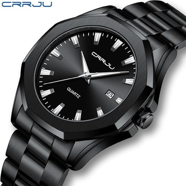 - CRRJU Men's Business Casual Black Watches Waterproof Calendar Full Steel Metal Glow Analog Quartz Wristwatches with reliable performance and quality- UNIQUE ELEGANT DESIGN: High Quality Japan Movement;Classic Calendar;Thick 316L Black Solid Stainless Steel Band- DURABLE COMFORTABLE: Unique 13-sided Surface,IP Matte Plating Watch Case,Never fade;Hardlex Glass,Wear Resistance;- WATERPROOF FOR DAILY USE: 3ATM, HANDWASH, SWIMMING, NO PROBLEM ! NOTE: DO NOT press any butt