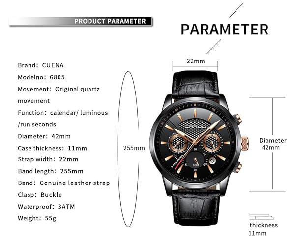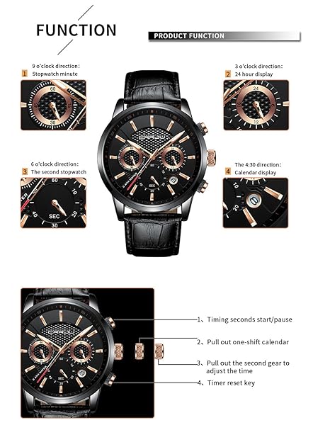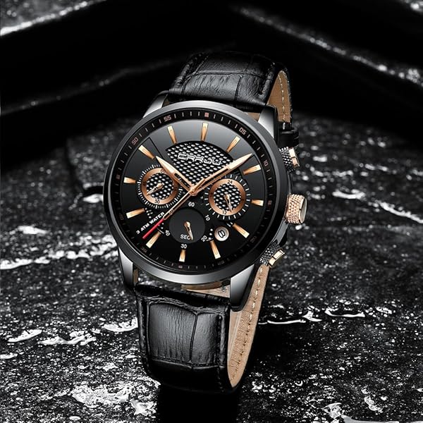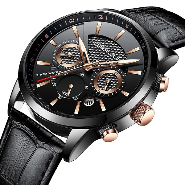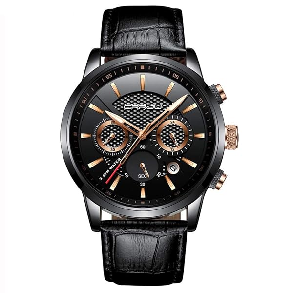 - CRRJU Men Fashion Casual Black Leather Watches,Chronograph Business Waterproof Auto Date Analog Men's Quartz Wristwatches provides reliable performance and quality- Classic Design: Blending timeless elegance with modern functionality: Features a multi-function dial with a seconds/minutes chronograph, 24-hour display, and round calendar window, balancing mechan...