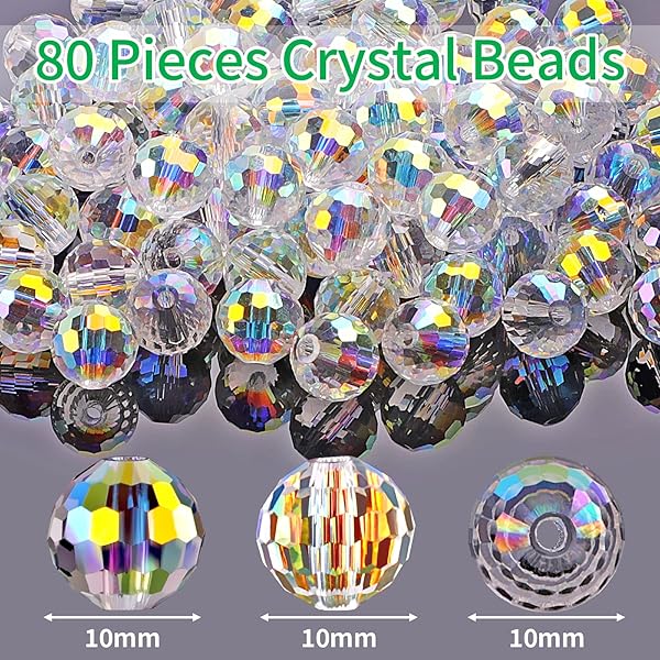 - Crystal Glass Beads for Jewelry Making, 80 Pieces Crystal Beads, 10mm Glass Beads, Round Faceted Beads Bulk for Craft Necklace Bracelet Earring (AB Color) with reliable performance and quality- 96 Faceted Crystal BeadsDifferent from ordinary beads, our crystal beads feature 96 facets. Every facet for reflecting the light makes it most sparkly and shiny. Makes your jewelry more charming.- For Jewelry MakingThese crystal glass beads are perfect for making your own jewelry, li