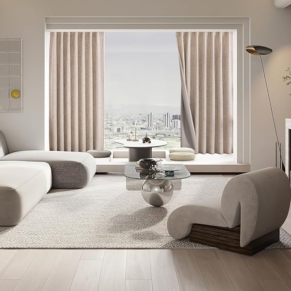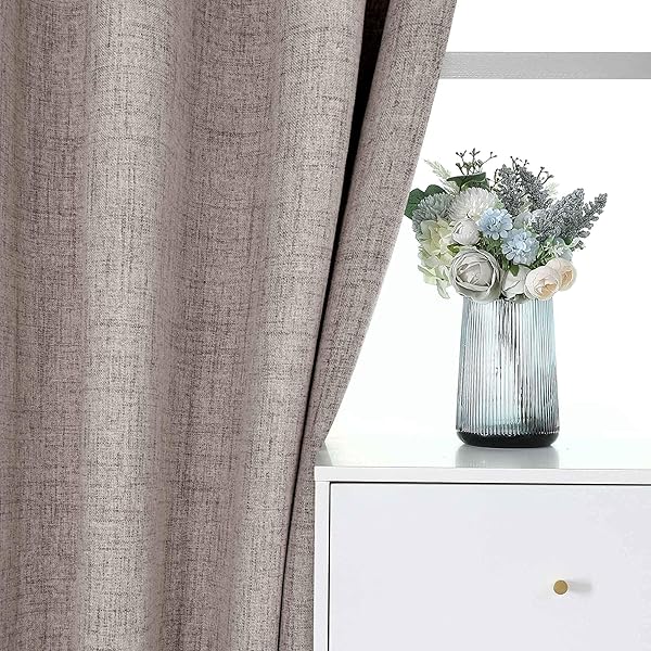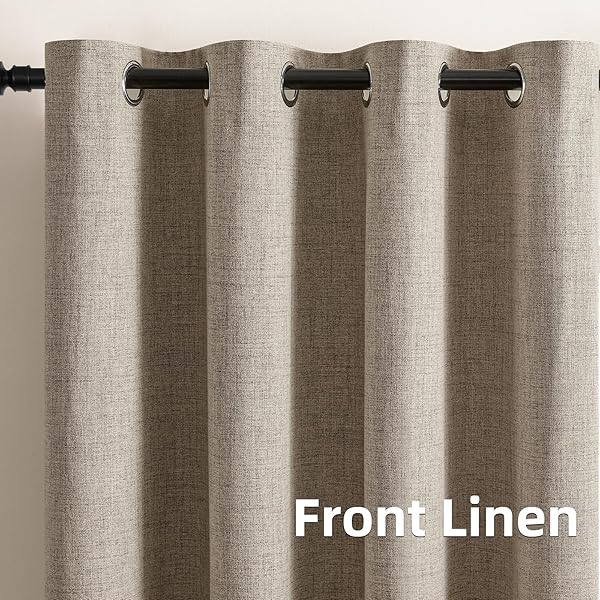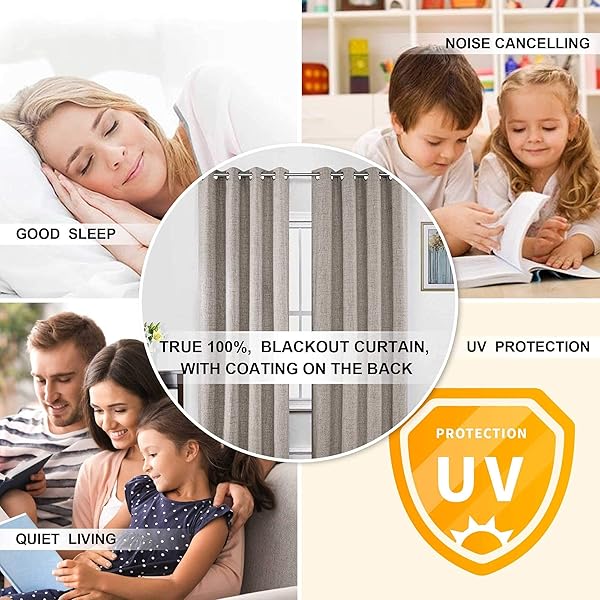 * CUCRAF 100% Blackout Window Curtains 63 inches Long 2 Panels Set, Faux Linen Look Thermal Insulated Grommet Drapes, Room Darkening Curtain for Bedroom Living Room(W52 x L63 Inch, Light Khaki): thick material and package:well made and the material is thick,durable and a little heavier than the common blackout curtains * 2 panels per package and each panel measures 52 inches Wide x 63 inches Long * Each faux linen curtain panel has 8 silver Grommets with 1.6 inch inner diamter,which makes the