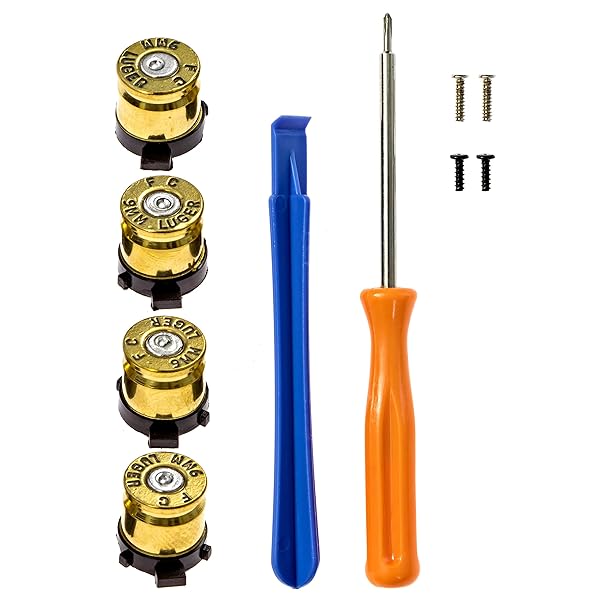 - Controller Bullet Buttons for PlayStation PS4 PS5 - Made with Real 9MM Spent Bullet Casings - Includes Tools offers reliable performance and quality- COMPATIBLE WITH PLAYSTATION CONTROLLERS: These bullet buttons are compatible with official PlayStation 5 and PlayStation 4 controllers - they will not work on third party controllers- REAL 9MM BULLETS: Each bullet button set is hand made using real 9MM spent bullet casings - bullet casing brand may vary