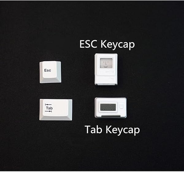 - Custom keycaps for Esc Key and Tab Key, Mag.ne.tic and Light-Transmission Design, fits Most Keyboards Especially 60% Mechanical Gaming Keyboard provides reliable performance and quality- Nostalgic Design: In honor of the first generation of M.A.C computers.- Light-transmission Design: The screen of the ESC keycap can transmit light.- Mag.netic design: Both ESC and Tab keycap have mag.netic, simple and stable.