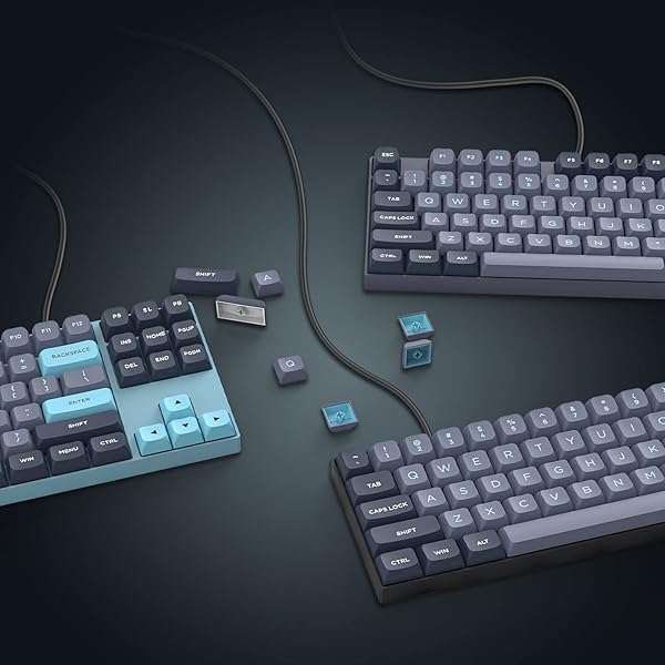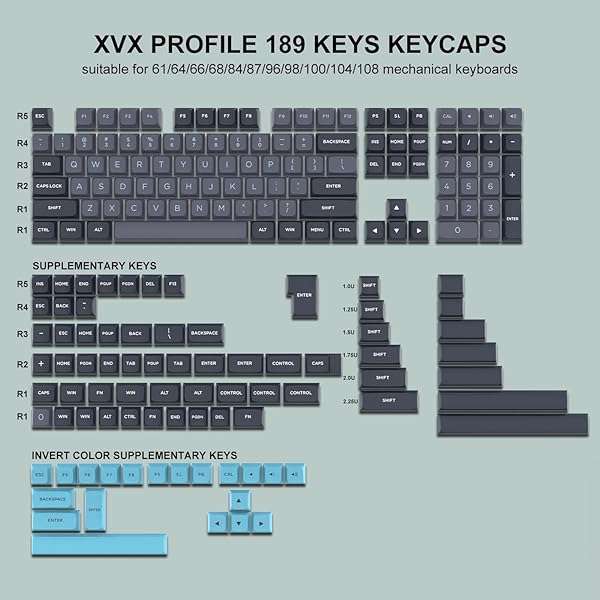 * dagaladoo PBT Keycaps,Grey/Dark Blue keycaps 60% 65% 100%, Japanese Style Custom Keycap, Cherry Profile Keyboard Key caps for 60% 65% 75% 100% TKL US Layout Mechanical Keyboard138keys: widely compatibledagaladoo 138 keys pbt keycaps set * Including 108 standard keys * 30 supplementary keys and 20 invert color supplementary keys for most 61/64/66/68/84/87/96/98/100/104/108 mechanical keyboards * Double shot keyboard key capsDouble shot design keycaps * Made from two colors material molded into