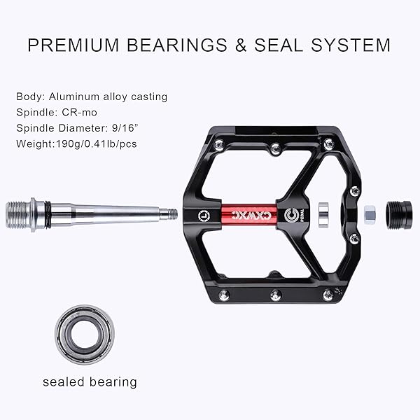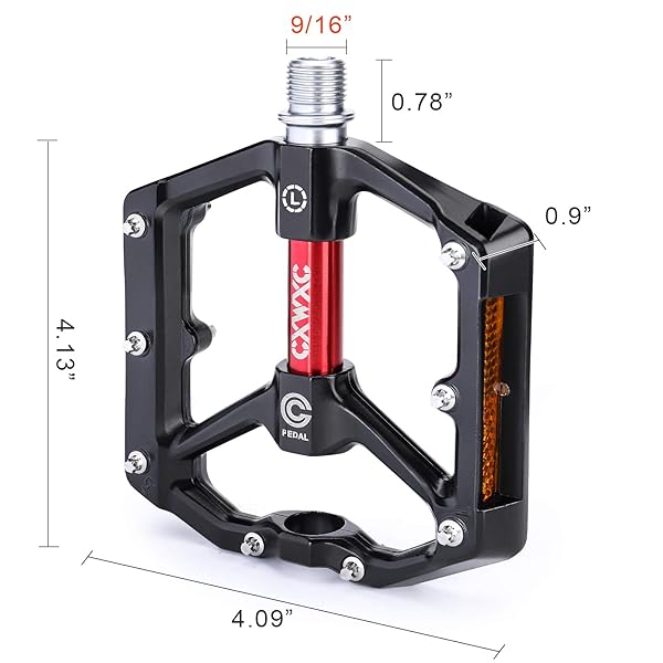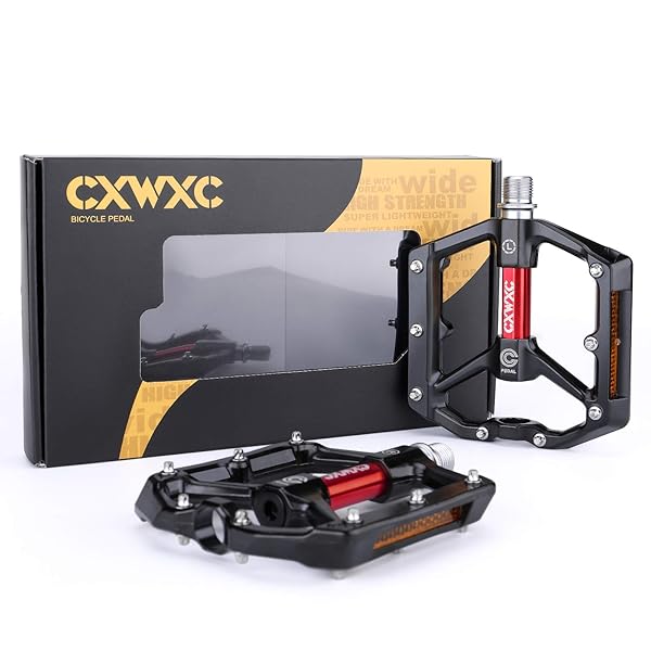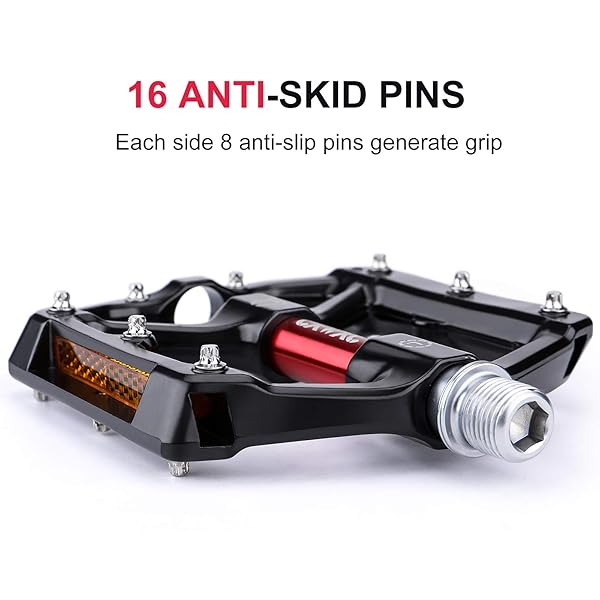 * CXWXC Road/MTB Bike Pedals - Aluminum Alloy Bicycle Pedals - Mountain Bike Pedal with Removable Anti-Skid Nails (A: Black-Red): anti-skid & great grips: the lightweight * Durable flat pedals are built around a aluminum chassis and offer top contact to your bike with their 8 pins per pedal side and a slightly concave surface * You will get The ease and maneuverability when you stand on large flat pedals without a fixed binding * Sturdy & Durable: The CNC pedal body and the hardened and tempered