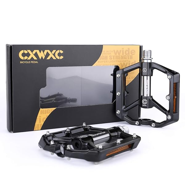 * CXWXC Road/MTB Bike Pedals - Aluminum Alloy Bicycle Pedals - Mountain Bike Pedal with Removable Anti-Skid Nails (Black-Gray): anti-skid & great grips: the lightweight * Durable flat pedals are built around a aluminum chassis and offer top contact to your bike with their 8 pins per pedal side and a slightly concave surface * You will get The ease and maneuverability when you stand on large flat pedals without a fixed binding * Sturdy & Durable: The CNC pedal body and the hardened and tempered