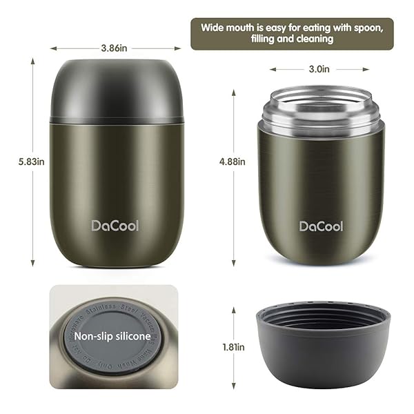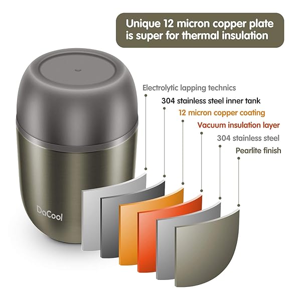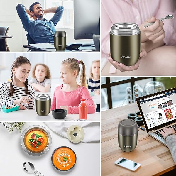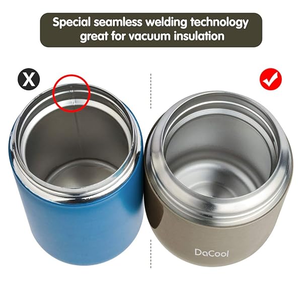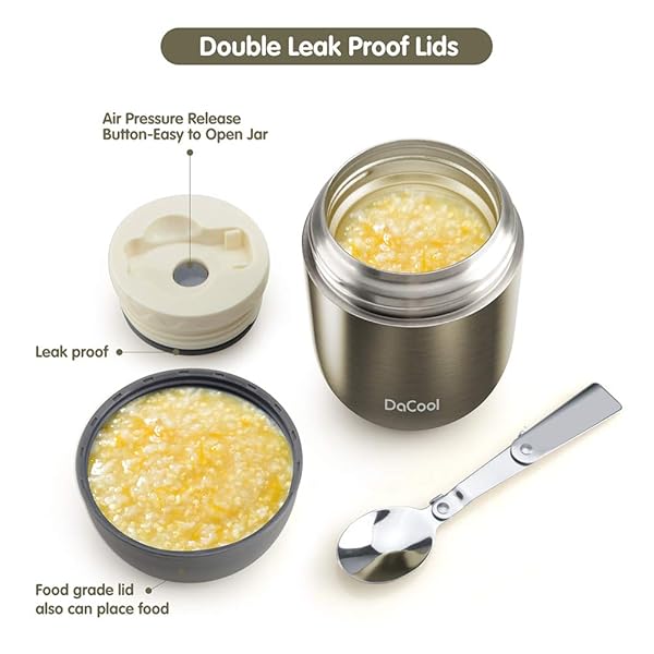 - DaCool Food Thermo Insulated Food Jar Lunch Container Vacuum Stainless 16 Ounce Kids Adult Bento Box for Hot Food with Spoon Leak Proof for School Office Picnic Travel Outdoors, BPA free - Gray offers reliable performance and quality- Safe Food Jar Stainless Steel -- BPA free, no PVC, 304 stainless steel, food grade material. Please enjoy this hot food jar without any worries