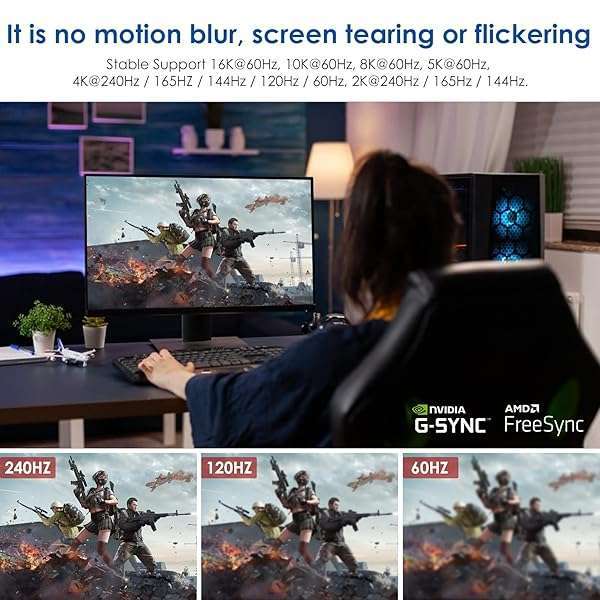 - Dbilida VESA Certified DisplayPort 2.1 Cable 6.6ft, 80Gbps, 16K@60Hz, 8K@120Hz, 4K@240Hz/165Hz, 2K@360Hz HDR, HDCP2.2, 3D, ARC for FreeSync G-Sync Gaming Monitor 5090 7900XTX,S1334 provides reliabl...- Customer Service & SupportRegarding DisplayPort Cable 2.1 issues and other issues, we will assist you in resolving them within 10 hours.