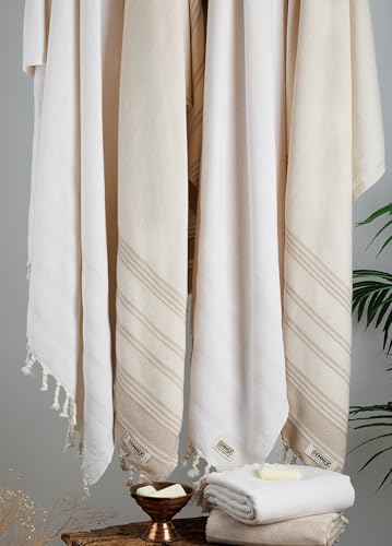DEMMEX Organic Turkish Cotton Bath Towel - Luxury Oversized Quick-Drying Peshtemal (71x36'', White) for Bathroom & Beach