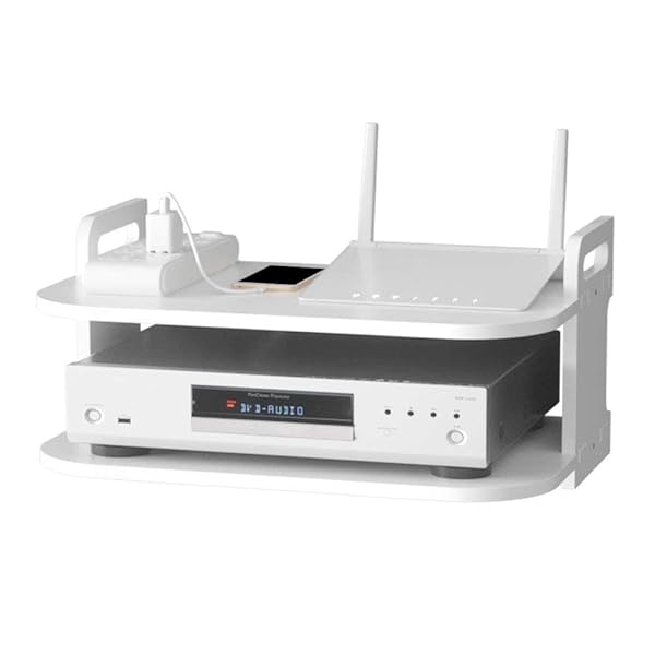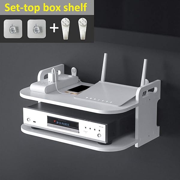 * Denpetec Floating Shelf for TV Components,TV Box Shelf Thick DVD Player, Wall Hanging Shelf Punching-Free Storage Rack Floating Shelf for Set-Top Box Router Game Consoles for Home: eco-friendly materialmade of thickened and eco-friendly wood plastic composite material * This wall storage shelf is very durable * Odorless and waterproof * Widely UseSuitable for home or office to organize your set-top box * Router