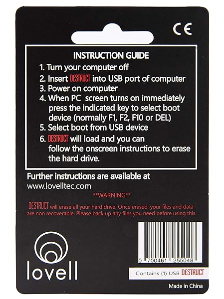 - DESTRUCT USB Gadget - Military Grade Hard Drive Wiper - Permanently Erase All Data on PC and Laptops Before Selling provides reliable performance and quality- Military Grade Destruction- Completely erase your hard drive- Easy to Use- Sell your PC without worrying about your Data