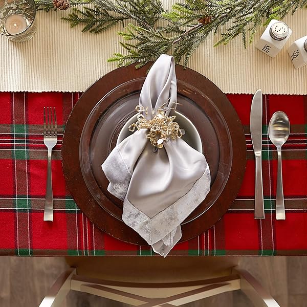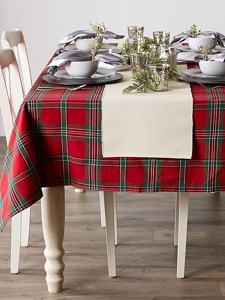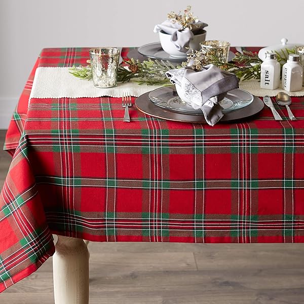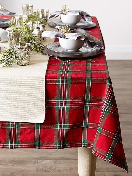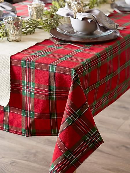 - DII Farmhouse Christmas Plaid Dining Table & Kitchen Decor, Holiday Tablecloth, 60x84, Red & Green: reliable performance and quality- FOR YOUR TABLE: This rectangular tablecloth measures 60x84",- EASY CARE: 100% cotton, machine washable, gentle cycle, tumble dry- ADDS A FINISHING TOUCH: Decorate for the holiday season with- ENHANCE YOUR HOME: Arrange holiday center pieces or cookies for Santa
