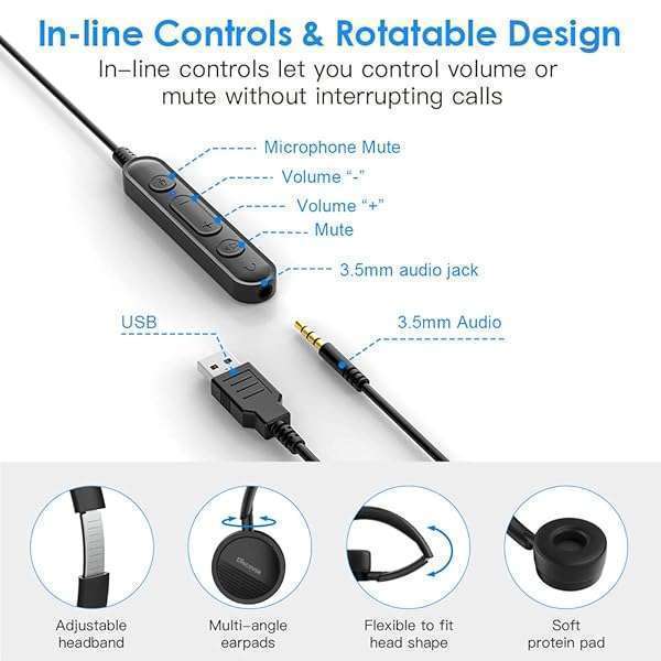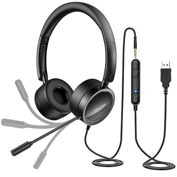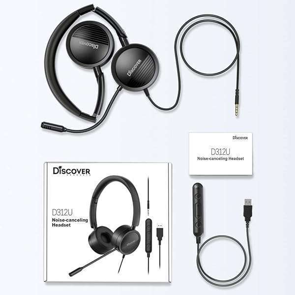 Discover D312U Dual Speaker Headset with USB and 3.5mm Connection- Compatible with Softphone Applications and Cell Phones with a 3.5mm Port