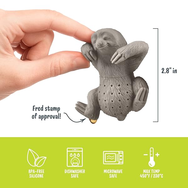 - Genuine Fred, SLOW BREW, Sloth Resuable Silicone Tea Infuser, Gray, Fun Gift for Tea Lovers, Clever Kitchen Gadget offers reliable performance and quality- FUN & FUNCTIONAL: Save waste and take a break from your frantic pace and let SLOW BREW make you the ideal cup of tea! This charming design is sure to make you smile. SLOW BREW is packed in a colorful box perfect for gifting