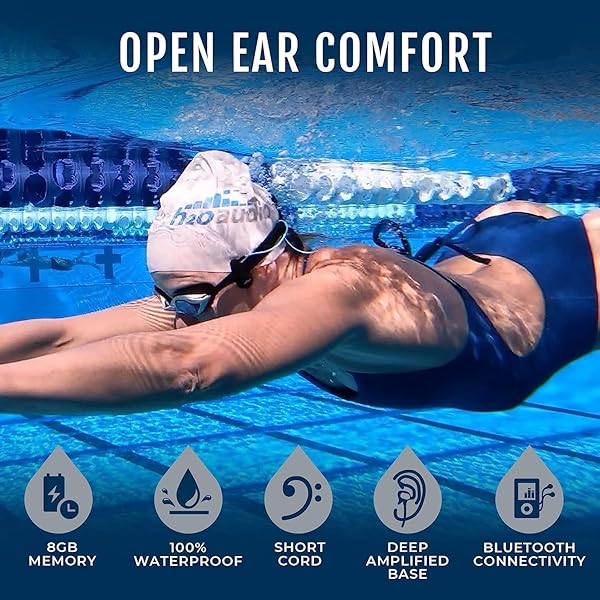 * H2O Audio Stream 3 with Short Cord Bone Conduction Headphones Waterproof MP3 Music Player & Open-Ear Bluetooth Headphones for Swimming 8GB Memory, IPX8 Rating: 1 year warranty: 100% waterproof * H2O Audio Waterproof technology ensure this MP3 player performs even when submerged to 12ft (3m) * Waterproof Rating: IPX8 * Reliable performance * High performance for daily use