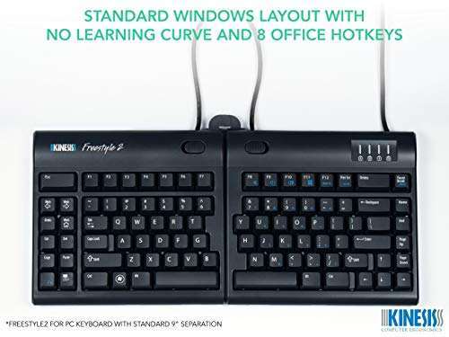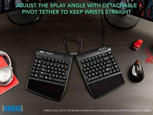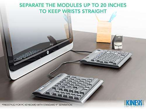 - Kinesis Freestyle2 Ergonomic Keyboard for PC (20" Extended Separation) provides reliable performance and quality- AWARD-WINNING SPLIT DESIGN: Unlike fixed ergonomic keyboards, the Freestyle2 allows you to rotate and separate the key modules up to 20" to achieve natural hand, wrist and forearm positions for you...