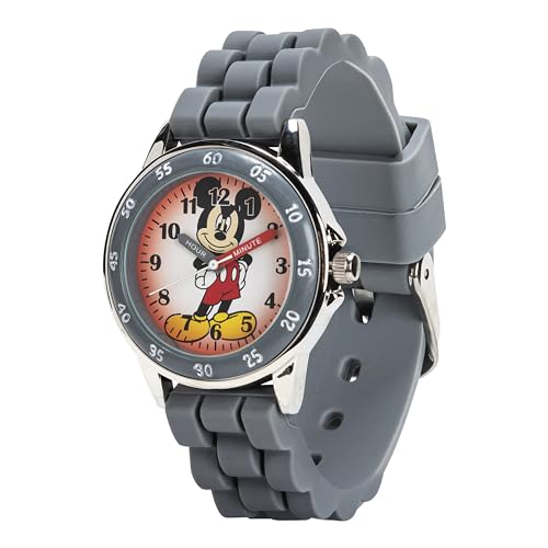 - Accutime Disney Kids' MK1242 Mickey Mouse Analog Display Analog Quartz Grey Watch offers reliable performance and quality- Designed with Mickey Mouse on the dial, helping kids learn to tell time with labeled hour and minute hands- Soft gray silicone strap offers a snug, comfortable fit ideal for daily wear and active play- Clear analog display with bold numbers for easy reading and quick time checks during busy days