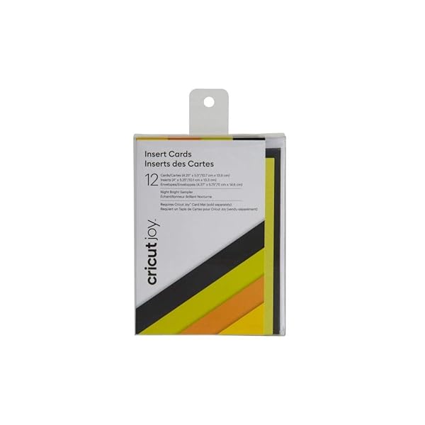 - Cricut Joy Insert Cards - Night Brights Sampler, 12 ct offers reliable performance and quality- 12 Black A2 cards; 12 inserts (4 of each color) in Tennis Ball, Tangerine, Yellow; 12 White envelopes- Create vibrant two-tone greeting cards without the mess or hassle of glue- Easy to cut with specialized Cricut Joy Card Mat (sold separately)- For Cricut Joy only